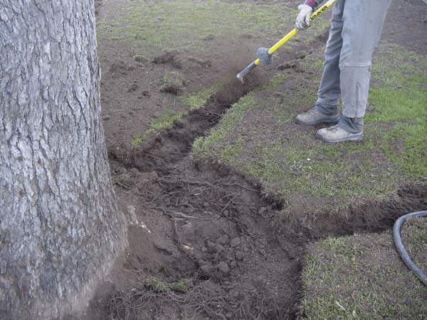 Watering the work area ahead of time can sometimes be helpful. Water reduces soil strength thus making digging easier. Water also reduces airborne dust if the soil is extremely dry. Combining the use of the AirSpade with a low-pressure water source (garden hose) can aid the excavation of highly compacted or sun-baked soils.