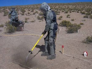 Sponsored by the Humanitarian De-Mining Program of the US Army at Fort Belvoir, VA, AirSpade has been incorporated into proprietary systems to efficiently and safely uncover buried land mines. Extensive testing at Fort A.P. Hill, VA concluded that AirSpade significantly reduced the time to find and expose hundreds of anti-personnel and anti-tank training mines over current practices.